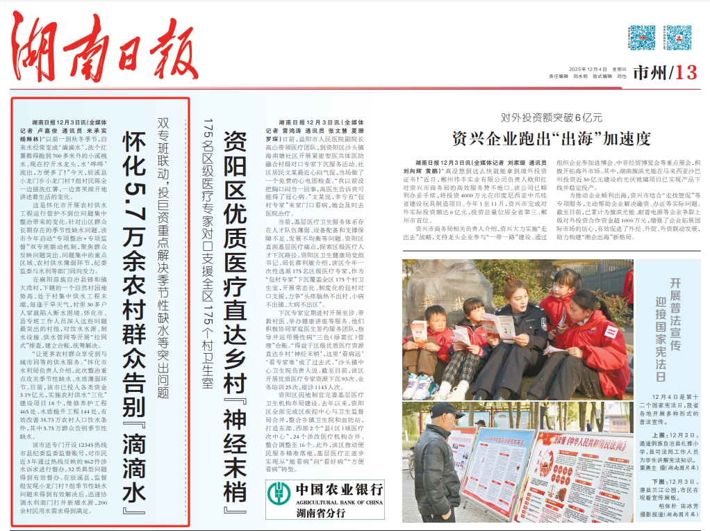 《湖南日报》2025年12月4日市州版头条